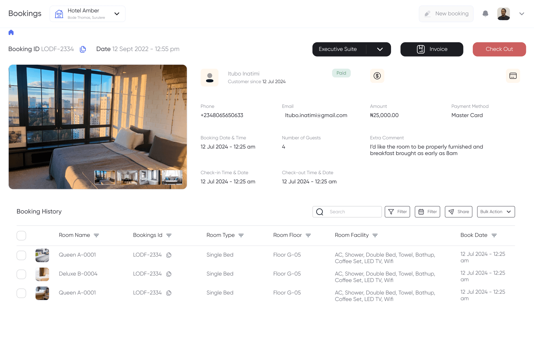 The UX was centered around an intuitive dashboard with role-based access, real-time room status updates, and easy booking management. Features such as automated housekeeping notifications and seamless billing workflows ensured operational efficiency.