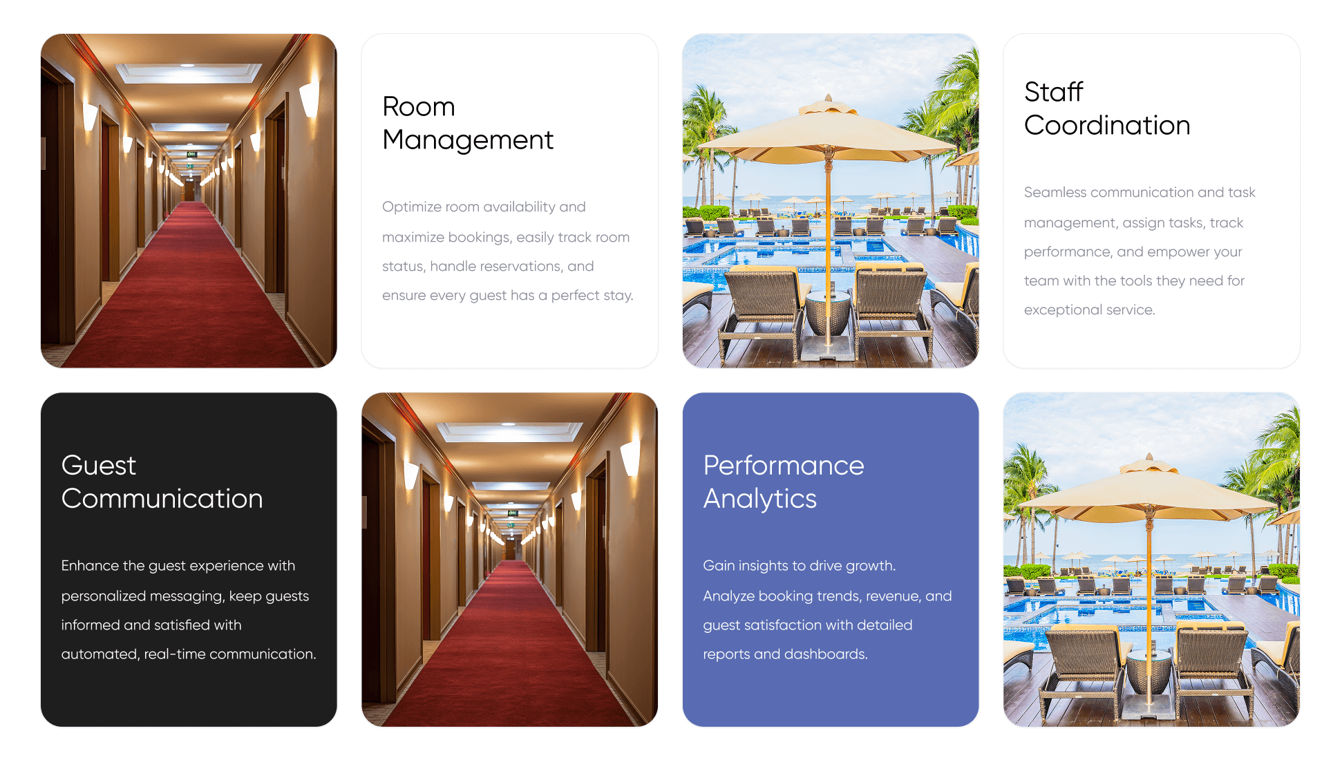 Our research identified key pain points such as difficulty in tracking room status, inefficient staff coordination, and outdated booking processes. These insights helped us shape a system that streamlined operations and improved guest experiences.