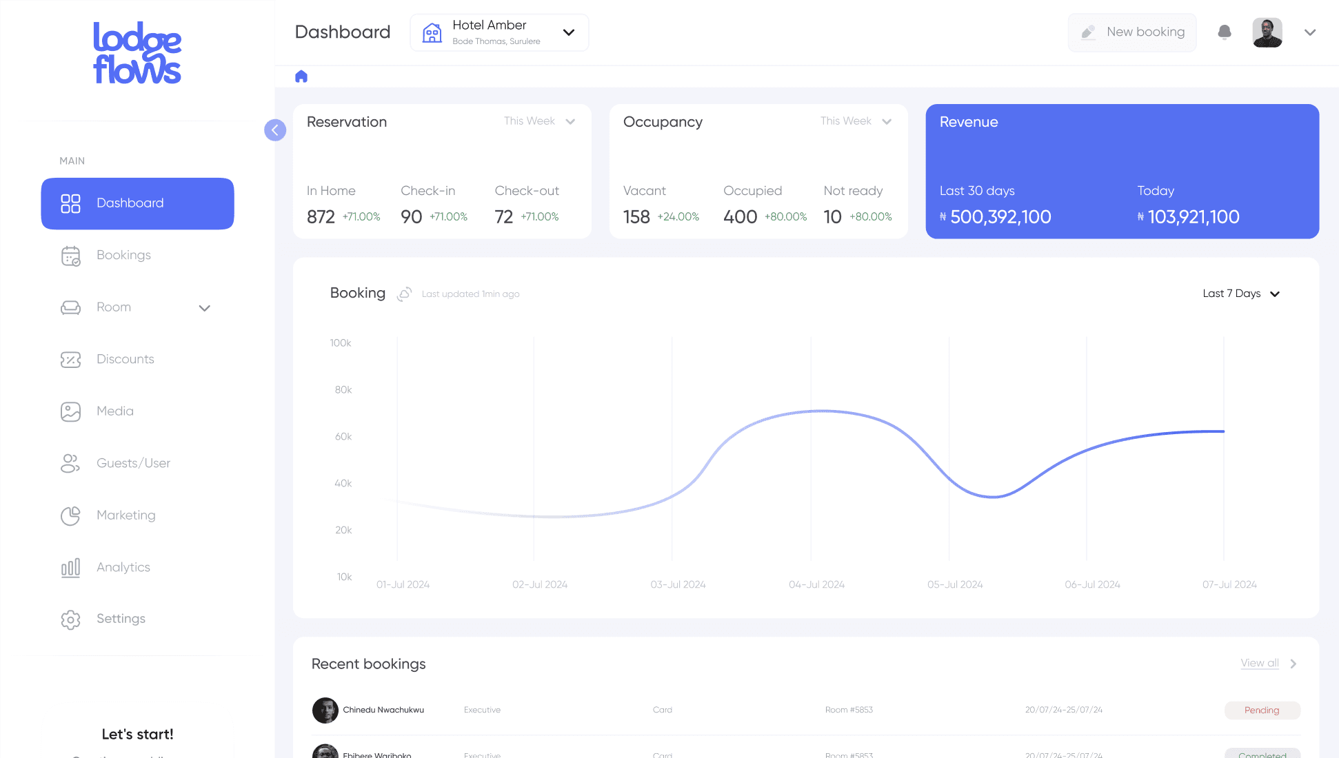 LodgeFlows helped reduce manual administrative tasks by 80%, increased room occupancy rates by 15%, and improved customer satisfaction ratings. Its automation and real-time data access transformed hotel management workflows.